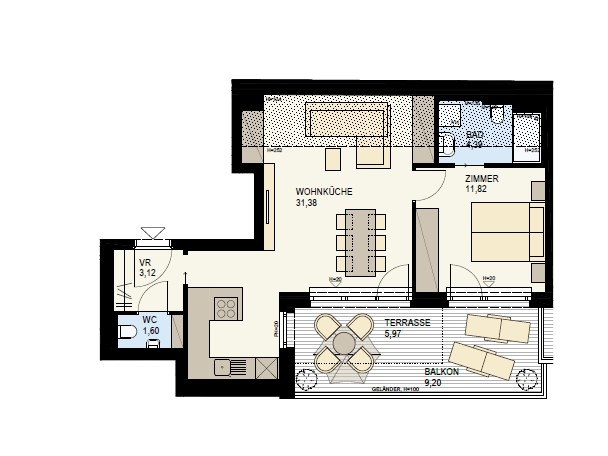 2-ZIMMER NEUBAU MIT TOLLER TERRASSE IN DÖBLING