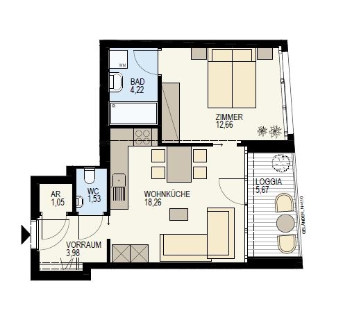 SÜSSE 2-ZIMMERWOHUNG MIT SÜDLOGGIA