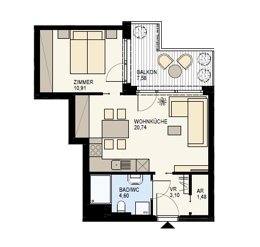 Diese Wohnung eignet sich ideal für Singles oder Paare, die eine stilvolle und gut geschnittene Wohnlösung mit viel Licht und Außenfläche suchen.