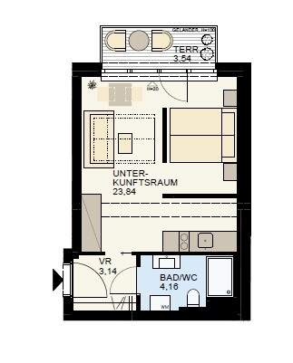 - Freiflächen: Terrasse, Balkon, Loggia