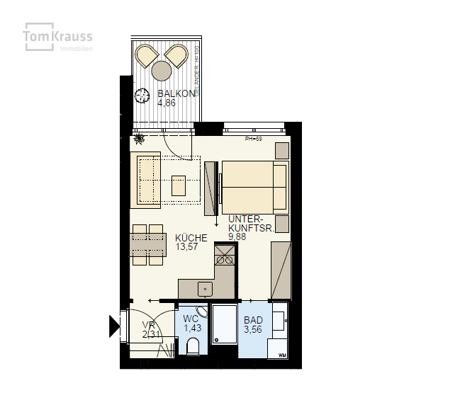 Süßes Apartment zur Kurzzeitvermietung mit Süd Balkon und optimalen Grundriss