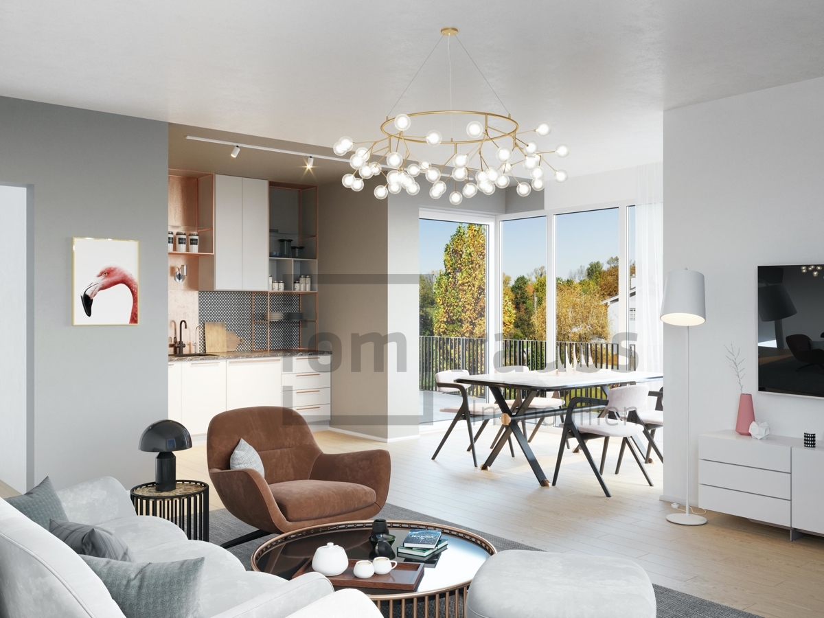 Mitten im Grünen Nähe Mühlwasser wird diese westseitig ausgerichtete Dachgeschosswohnung errichtet. Die großzügige 3 Zimmerwohnung bietet ausreichend Platz zu Wohlfühlen und Entfalten. Von der Wohnküche erreicht man die 21 m² große Terrasse. 1 Schlafzimmer und ein weiteres Zimmer, sowie ein geräumiges Bad komplettieren das Angebot. Zu dieser Wohnung gehört auch ein 8,2 m² großer Einlagerungsraum. Ein Autoabstellplatz kann optional um € 24.000,00 erworben werden.