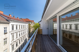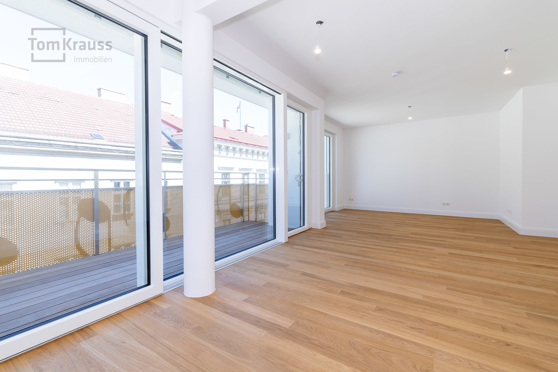 Im 5. Stock, dem ersten Dachgeschoss ohne Schrägen, erwartet Sie diese elegant geplante 2-Zimmer-Wohnung mit nordwestseitiger Ausrichtung und hochwertiger Ausstattung. Große, bodentiefe Fenster sorgen für Helligkeit und schaffen eine freundliche, offene Wohnatmosphäre. Der Wohn-Essbereich mit Zugang zu Loggia und Balkon lädt zum Entspannen und Wohlfühlen ein – ideal für ruhige Stunden nach einem lebendigen Tag in der Stadt.
