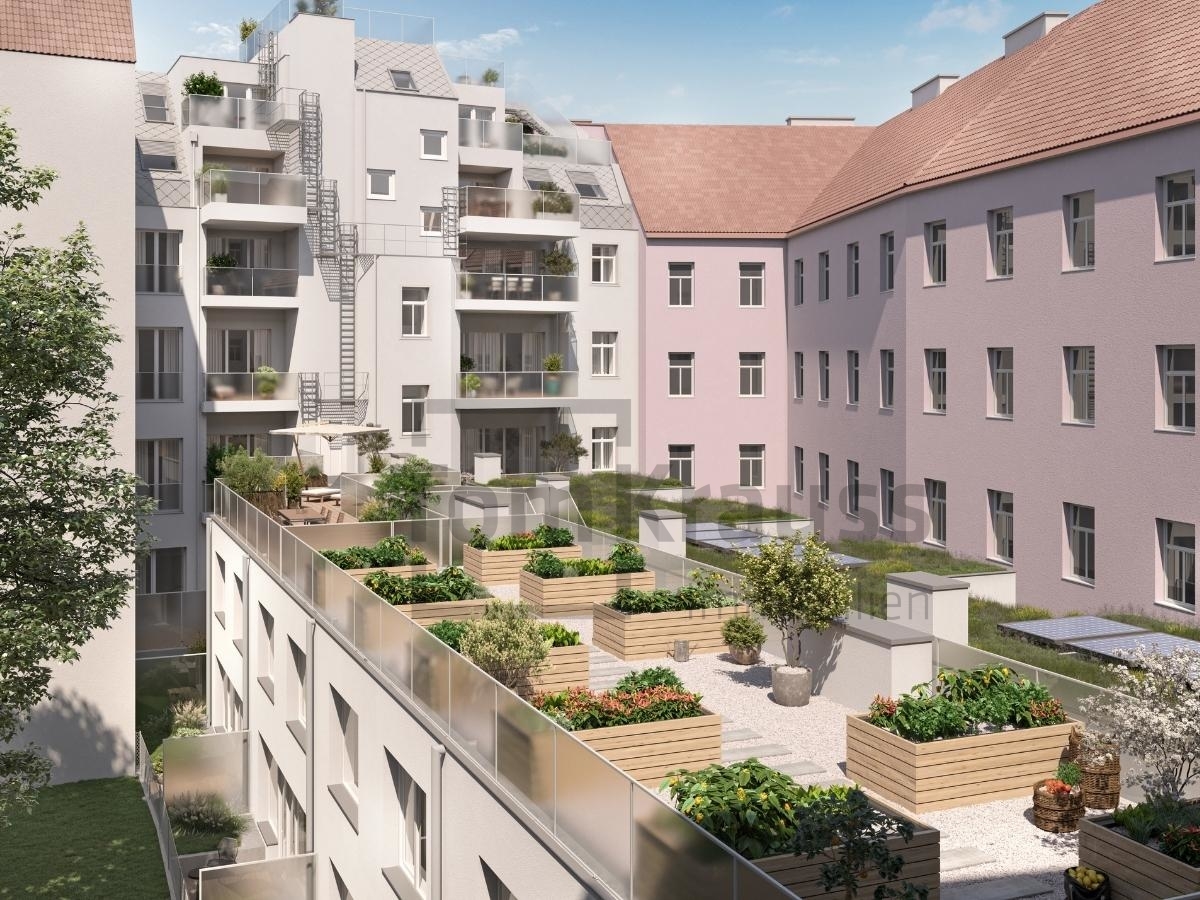 Ausgesuchte Materialien und deren professionelle Verarbeitung versprechen erstklassige Lebensqualität auf allen Ebenen. Große, bodentiefe Fenster erzeugen eine warme, lichtdurchflutete Atmosphäre und lassen Wohn- und Freibereich miteinander verschmelzen. Alle Einheiten punkten zudem mit hochwertigen Parkettböden in den Wohnräumen und qualitätsvollem Feinsteinzeug in den Sanitärräumen. Auf dem im Innenhof liegenden Dachgarten steht eine Fläche für Urban Gardening zur Verfügung. Die Beheizung des gesamten Projektes erfolgt über eine innovative Luftwärmepumpe.