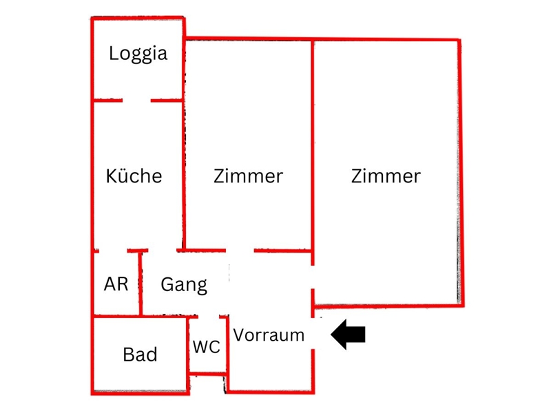 Die angebotene 2-Zimmer-Wohnung gliedert sich wie folgt auf: