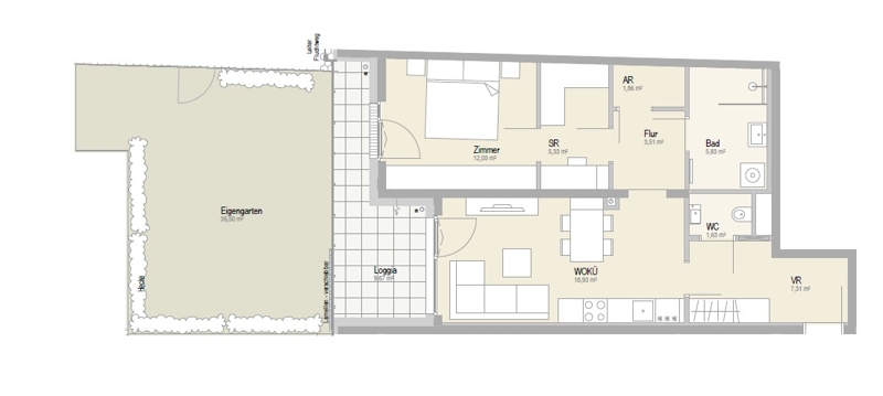 Hobbygärtner aufgepasst: zum Verkauf gelangt eine großzügig geschnittene 2-Zimmer Wohnung, welche keine Wünsche offenlässt und jedes Hobbygärnter Herz höherschlagen lässt. Die hofseitig ausgerichtete Gartenwohnung besticht vor allem durch ihre große Loggia und Ihren großen Eigengarten. Die Wohnung selbst gliedert sich in einen Vorraum nebst WC, eine Wohnküche, ein Badezimmer mit Dusche, einen Abstellraum, einen Schrankraum, welcher auch optimal als Home-Office genutzt werden kann, sowie ein Schlafzimmer, von welchem man ebenfalls in den Garten gelangt.