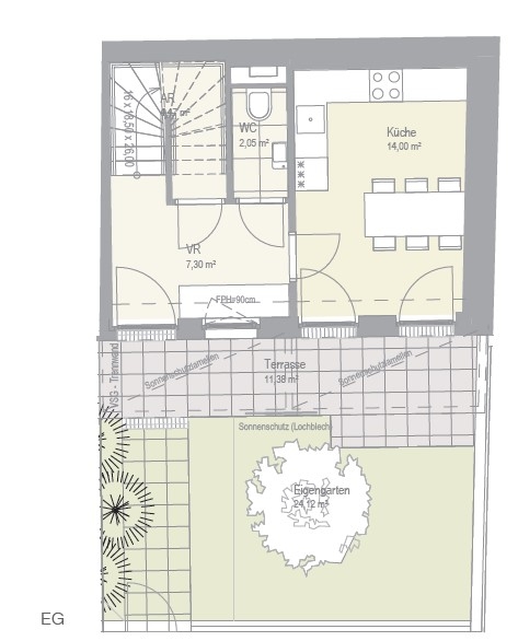 Genießen Sie die Vorzüge eines Hauses und die Bequemlichkeit der Stadt, denn das „Haus im Haus“ – Konzept, vermittelt ein Rund-um-sorglos-Paket, welches perfekt für Familien geeignet ist. Das Townhouse streckt sich über zwei Etagen und verfügt über einen eigenen privaten Garten. Die Erdgeschoß-Etage verfügt über einen schönen Garten, eine Terrasse, einen Vorraum nebst WC, einen Abstellraum (unter dem Stiegenaufgang) sowie einer SEPARATEN Küche. Die Planung der oberen Etage sieht einen Flur mit viel Stauraum, ein Elternschlafzimmer sowie ein Kinderzimmer, ein Bad mit Dusche, Doppelwaschbecken und einem weiteren WC und ein offenes Wohnzimmer vor.