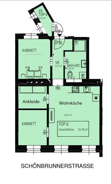 Die insgesamt ca. 55,78 m² verteilen sich auf einen Vorraum mit Garderobe, ein modernes und top ausgestattetes innenliegendes Duschbad mit japanischem WC, zwei Schlafzimmer, einen großzügigen Abstellraum/Walk-Inn Kleiderschrank sowie eine geräumige und helle Wohnküche mit schicker Luxus-Einbauküche.