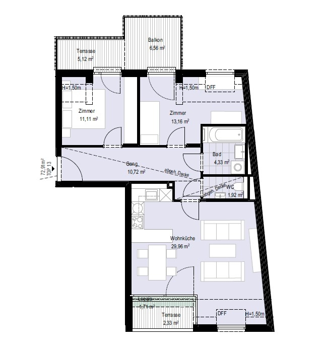 Die insgesamt 18 Wohneinheiten mit durchdachten Grundrissen erstrecken sich auf nur 5 Wohngeschoße. Die Wohnungsgrößen variieren zwischen 2 und 4 Zimmern und bieten optimale Möglichkeiten, sich nach Lust und Laune zu entfalten. Die überwiegend bodentiefen Fenster und die hervorragenden Ausrichtungen der einzelnen Einheiten garantieren für helle und freundliche Wohnungen.