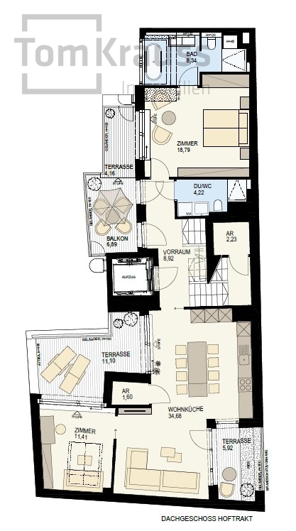 Exclusive 3-room courtyard apartment with spacious roof terrace in a top city location. Just a few steps away from Karmelitermarkt, it combines urban flair with relaxed tranquillity. A real highlight for discerning city dwellers!