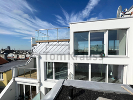 This exclusive penthouse offers a unique lifestyle. The roof terrace with pool and breathtaking panoramic views over the old Danube and into the city round off the luxurious living experience. The impressive penthouse is characterized by its wonderful location in the heart of Kaisermühlen.