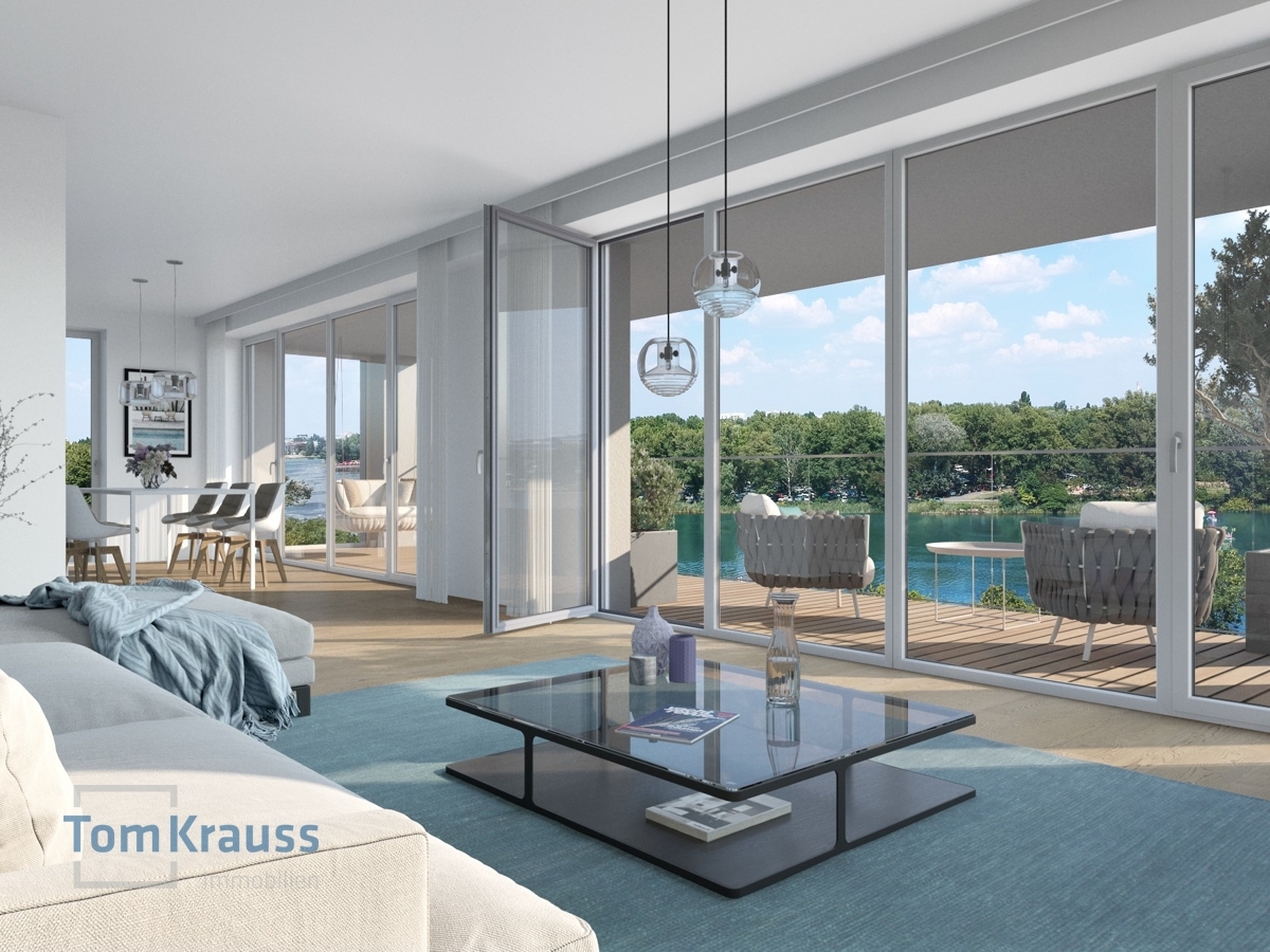 The freehold properties are divided into 2- to 5-room apartments and impress with their well thought-out room concepts with living areas of 59 m² to 228 m². A special feature are the generous open spaces, which score especially in the upper floors with a great view of the Danube and guarantee a maritime living atmosphere.