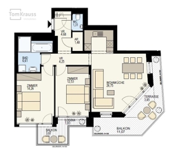 The apartment is furnished to a high standard and promises maximum comfort. The elegant parquet flooring creates a warm and inviting atmosphere, while the ceiling cooling ensures a pleasant indoor climate. The light-flooded, south-west-facing terrace is ideal for relaxing hours outdoors and allows you to enjoy the sun to the full.