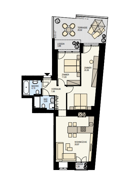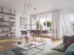 Selected materials and their professional workmanship promise first-class quality of life on all levels. Large, floor-to-ceiling windows create a warm, light-flooded atmosphere and allow living and outdoor areas to merge. All units also score with high-quality parquet flooring in the living areas and high-quality porcelain stoneware in the sanitary rooms. An area for urban gardening is available on the roof garden located in the inner courtyard. The entire project is heated by an innovative air-source heat pump.
