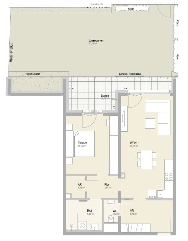 Your summer in your own garden: If you like to spend your time outdoors, this is YOUR chance! Take the opportunity to spend your future summers in your own garden and make your urban jungle dream come true. The apartment impresses with its good floor plan. You enter the apartment via a spacious vestibule, which is directly adjacent to the separate toilet and the eat-in kitchen. From there you enter the hallway, the bathroom with shower, the storage room and the spacious bedroom, which offers enough space for bed, wardrobe and desk.