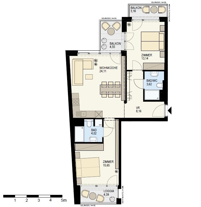 Hours of sunshine guaranteed! Two balconies and a loggia invite you to spend time outdoors - without having to leave your new home!