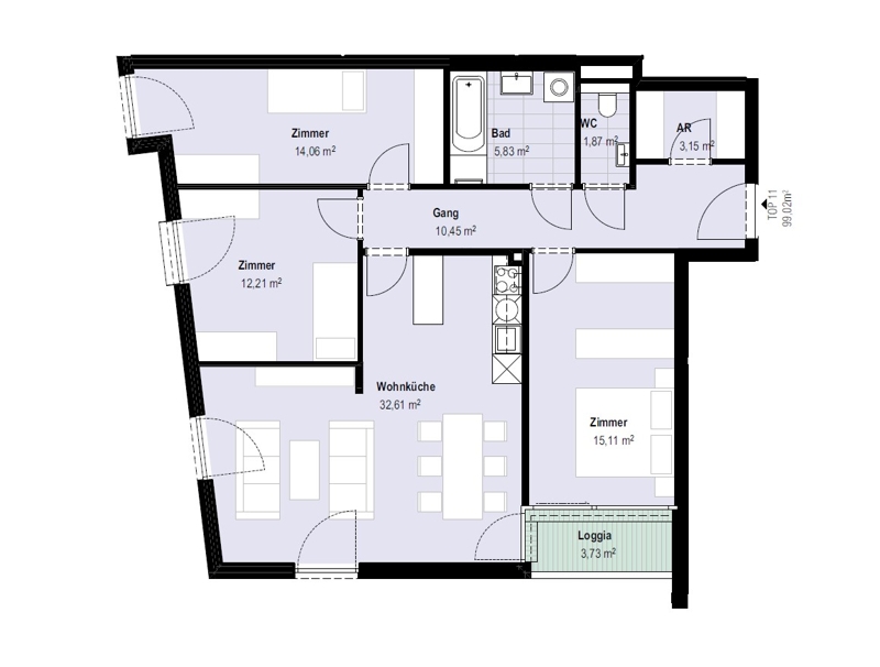 - Largely loggias, balconies or terraces, on the ground floor private gardens.